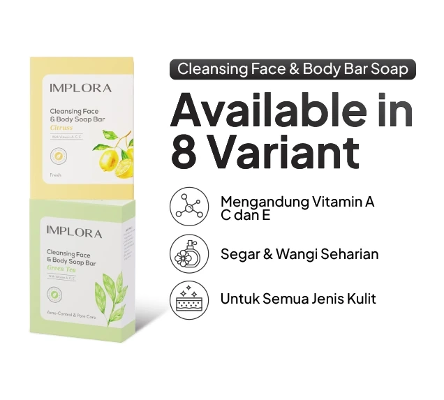Implora Cleansing Face & Body Bar Soap sabun pembersih yang lembut namun efektif untuk membersihkan wajah dan tubuh. Diformulasikan untuk mengangkat kotoran, minyak, dan sisa makeup tanpa membuat kulit kering, sabun ini menjaga kelembapan alami kulit. Cocok untuk semua jenis kulit, termasuk kulit sensitif, memberikan sensasi segar dan bersih setelah pemakaian. Sabun ini juga membantu menjaga keseimbangan pH kulit, menjadikannya pilihan praktis untuk perawatan sehari-hari.