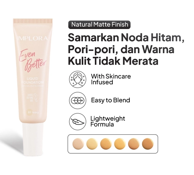 Terdapat 6 pilihan warna Implora Even Better Liquid Foundation :
