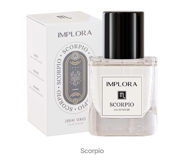 Top : Bergamot, Orange. Middle : Geranium, Lavender, Ozone. Bottom : Amber, Precious Woods, Coumarin, Oakmoss. - SCORPIO (Woody)
