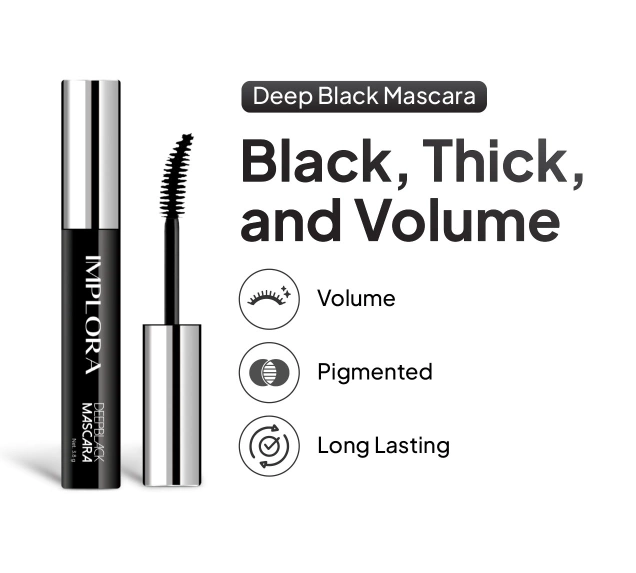 Implora Deep Black Mascara memberikan hasil bulu mata tebal dengan warna hitam pekat yang intens. Formula tahan lama ini melentikkan dan memberikan volume ekstra, membuat mata Anda terlihat lebih besar dan memukau. Cocok untuk tampilan sehari-hari atau dramatis, tetap nyaman dan tidak menggumpal.